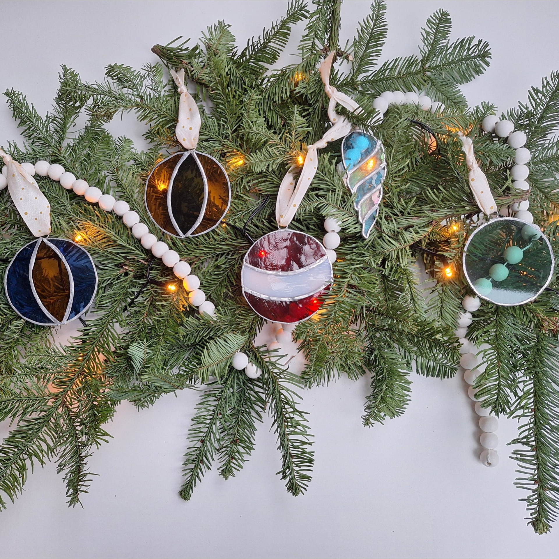 Deze prachtige kersthanger heeft alleen een beetje licht nodig om te stralen. Doordat het deels gemaakt is met iriserend glas zal het continue subtiel van kleur veranderen wanneer je langsloopt.
